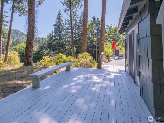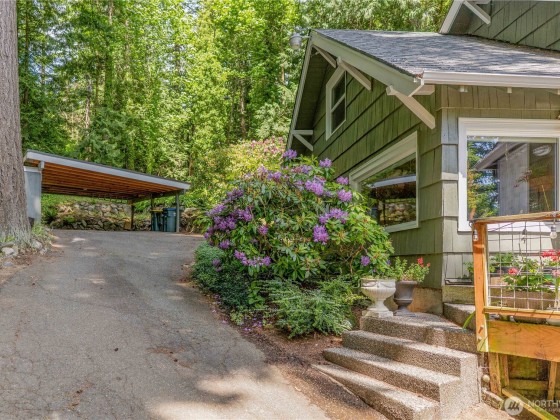 Nestled among evergreens in the rolling hills of South Bellingham, this home offers a peaceful, forest-like setting with rare privacy. Bordering the city’s newest park project—Hundred Acre Wood—miles of scenic trails and outdoor adventures are right outside your door. Inside, warm wood floors, a cozy wood-burning fireplace, and abundant natural light create a welcoming retreat. The main-level primary suite features direct deck access, while upstairs provides three additional bedrooms. A spacious deck is perfect for morning coffee or outdoor entertaining, with garden beds ready for your personal touch. Additional highlights include a carport, a partially finished basement for flexible use, and potential to create a second residential unit.