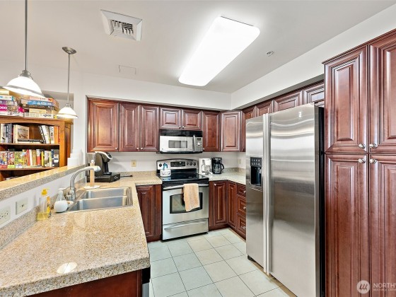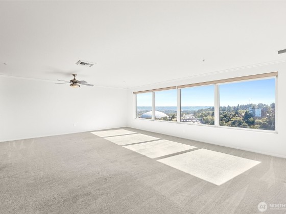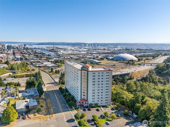 Stunning 3-Bed Condo w/Views of Mt. Rainier & the city. Step into a light-filled living space w/large windows showcasing the scenery from nearly every room. Fresh paint, updated light fixtures & switches compliment the unit. Kitchen boasts ample cabinetry, generous counter space, & seamless flow into the dining & living areas — perfect for entertaining. Enjoy A/C, & private in-unit laundry. The primary suite w/private bath & balcony access offering a serene retreat after a long day. The building boasts elevator access, secure locked lobby w/key entry, & fitness center, extra storage space & reserved covered parking. Minutes from downtown Tacoma, waterfront, quick access to the best dining, shopping, & entertainment the city has to offer.