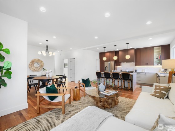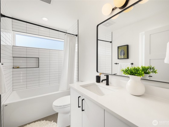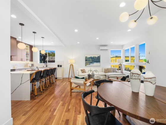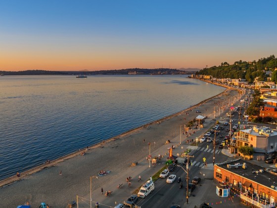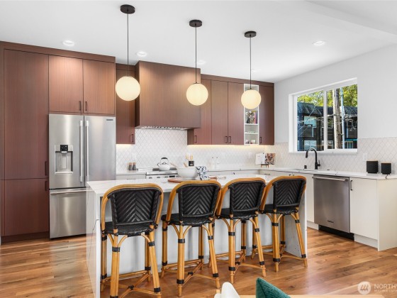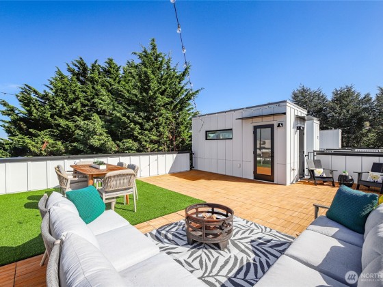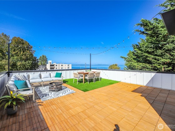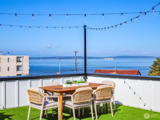 Welcome to Alki one of Seattle's most vibrant neighborhoods. Upper Left Living has built an exceptional new home paying attention to every detail. This home has it all - location, spacious rooms, amazing light, high end designer finishes, office, fenced yard and private rooftop deck w/ awesome Sound, Mtn & territorial views. The home features a luxury primary suite w/ luxury bathroom, designer tile, heated floors, double vanity, curb less shower w/ heated floors, plus 2 more bedroom on the same floor. Spacious kitchen with all the chef's touches, under counter lighting, stainless appliances, walk-in pantry and prep island/eating bar. Main floor dining, powder rm, White Oak hardwoods & roomy 2 car attached garage w/ E-car ready. No HOA dues.