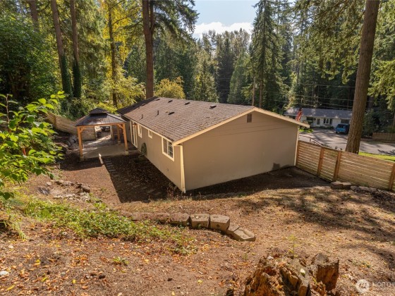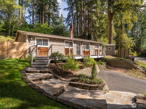 Charming updated 3-bedroom rambler in sought-after Cottage Lake! Set on a peaceful, wooded lot with beautiful terrace steps leading to a spacious front deck. Bright, open kitchen features stainless steel appliances, a center island, and a dining area. Stylishly remodeled bathrooms, new Outlast soft oak waterproof laminate flooring, and fresh interior paint throughout. Enjoy a fully fenced backyard, gazebo, storage shed, plus ample off-street parking. Located in the top-rated Northshore School District, near the Tolt Pipeline Trail for biking, walking, or horseback riding, and just minutes to Woodinville wineries and dining.