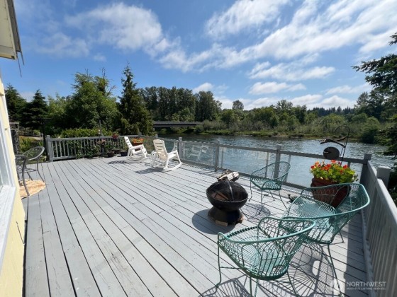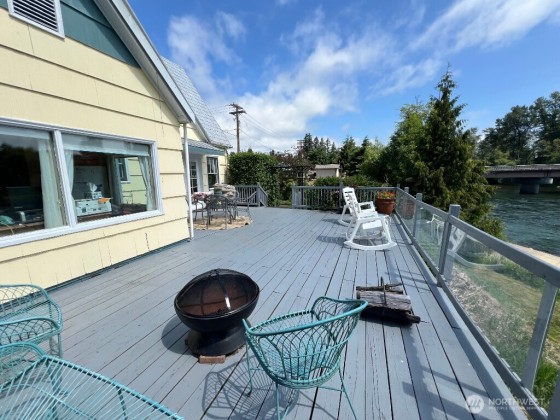 Don't miss this opportunity to own a bit of Toledo history! Charming 3/2 waterfront cottage. Kitchen, Dining, Primary bedroom with ensuite bath, study, and living room on first floor. Second floor has two additional bedrooms and a full bath. Partially finished basement, currently used as a Laundry Room and storage area, offers additional living and bedroom space. Large corner lot has fruit trees, and provides easy access to public boat ramp. A two story outbuilding offers an additional workshop or possible guest house conversion. Enjoy gorgeous views of the Cowlitz River and wildlife from the spacious deck. A zoning change is in the works to change the property zoning to mixed use. Recent upgrades to electrical, deck and porch roof.