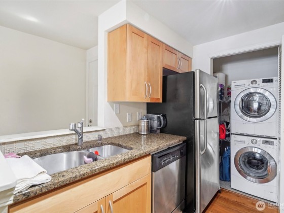 New price! Light-filled 1 bed, 1 bath condo at AraVita in Magnolia offers comfort, style, and updates in a prime location. With 555 SF, this charming unit features real hardwood floors, stainless steel appliances, granite countertops, in-unit laundry, and a wood-burning fireplace for cozy evenings. Oversized windows bring in abundant natural light and faces the back of building so quiet and peaceful. Includes secure garage parking, Amazon locker, bike storage, and more. Well-maintained building with recent upgrades: new siding, roof, windows, and elevator on the way. Minutes from downtown, groceries, cafes, and shops. No rental cap—seller has already paid all assessments. Investor-friendly and move-in ready!