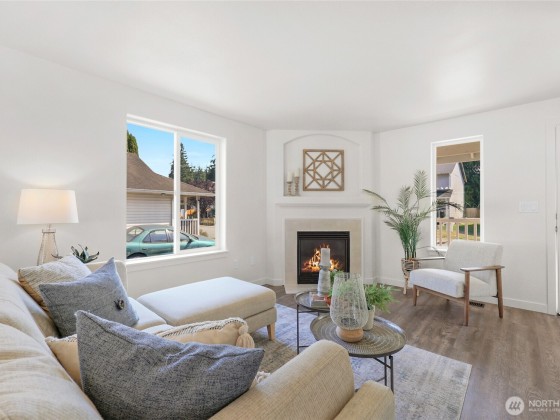 Beautifully updated Arlington 2-story - Step inside to bright and open floor plan featuring cozy living room, new vinyl plank flooring, recessed lighting, and fresh interior paint throughout. Gourmet kitchen is a true showstopper, boasting new quartz countertops, new soft close cabinets, new stainless steel appliances. Upstairs hosts the expansive primary suite w en-suite bathroom, walk-in closet, + two additional bedrooms and upstairs laundry. Front and back decks – perfect for weekend barbecues or morning coffee. The detached 2-car garage offers extra storage + room for RV parking. NEW ROOF ON HOUSE & GARAGE. FRESH EXTERIOR PAINT. Ideal location minutes to I5, shopping, Costco & local restaurants. Lakewood School District. Preinspected.