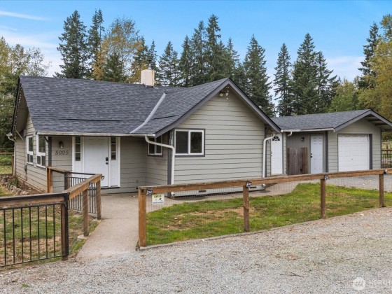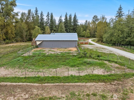 Turnkey EQUESTIAN property on almost 9 ACRES with move-in ready FARMHOUSE in Stanwood! This 3-bedroom, 2-bath home offers comfortable one-story living with fresh interior paint and new composition ROOF! Property features lit 108' x 60' COVERED riding arena with insulated viewing room, 133' x 66' grassed outdoor ARENA and 8+ fenced/crossed fenced pastures! Large 8 stall BARN with water and power, fully insulated tack room and upstairs office with ample storage. PLUS 1,295 sq ft SHOP with power, rollup doors and parking for horse trailer/RV and more! Tons of income producing potential/opportunity! Close to I-5 too!