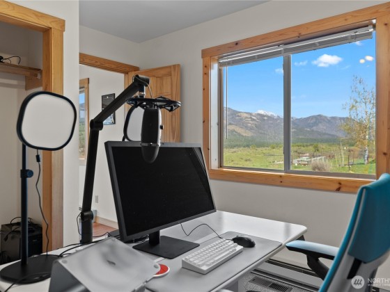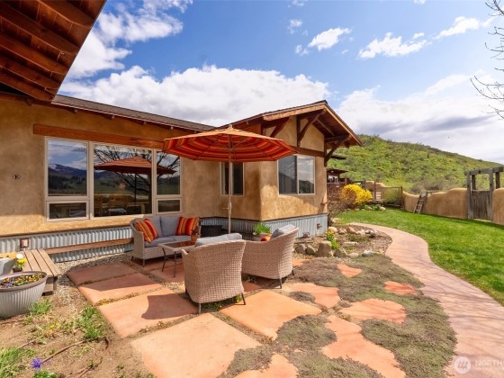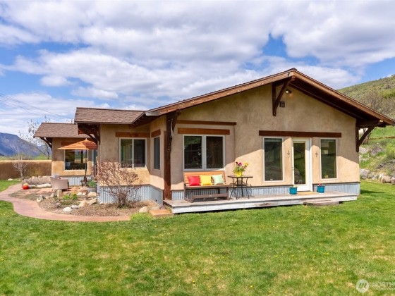 Unbeatable Value Near Winthrop! Just 2 miles from Winthrop, this ridge-top retreat borders public land with direct access to mountain biking, trail running, & hiking. Open-concept design showcases panoramic views through oversized windows, filling the space with natural light. A perfect blend of creative design & modern comfort. Featuring a primary ensuite bedroom with French doors to deck, 2 bright bedrooms, 2.5 baths, & an office w a view! Floorplan has a flexible layout with a lock-off apartment that’s ideal for hosting or rental income. A spacious 2-car garage plus a huge gear room for all your adventure essentials. Multiple outdoor living areas offer year-round relaxation. Live your Methow Valley dream—where performance meets peace.