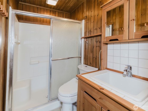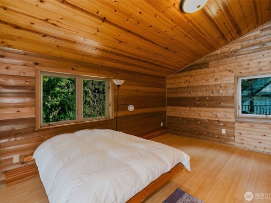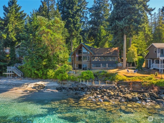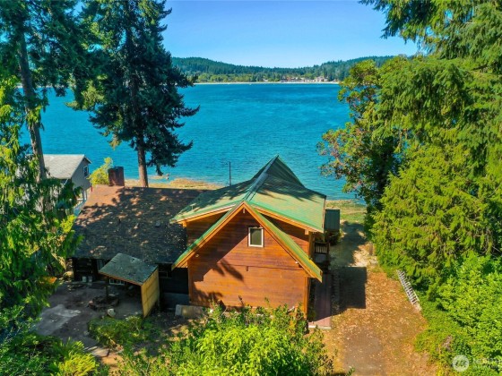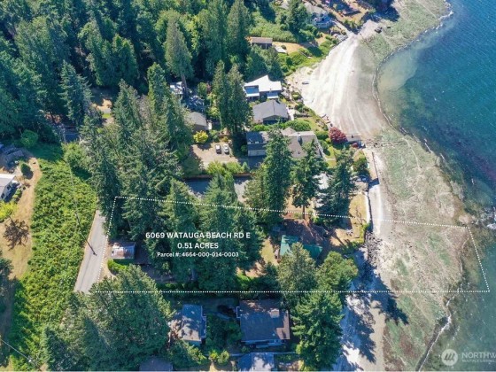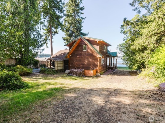 Bring your contractor, vision and toolbox! Rare opportunity in the highly coveted Watauga Beach community! First time on the market in 50 years. 2 houses in one! A spacious cedar home sits on a beautiful half-acre on a dead end street with stunning sunset views and ferries & the occasional carrier gliding by. Enjoy beachcombing, kayaking, or just relaxing by the water at your beachside firepit. The property also includes an older cabin, the original 1942 homestead, full of potential—remodel for a guesthouse or expand. Both structures are free standing. A detached garage, carport & RV parking. Located near the 55 acre Wynn Jones Preserve trails and ferry commuting. Bring your imagination & see the potential of coastal living at its finest.