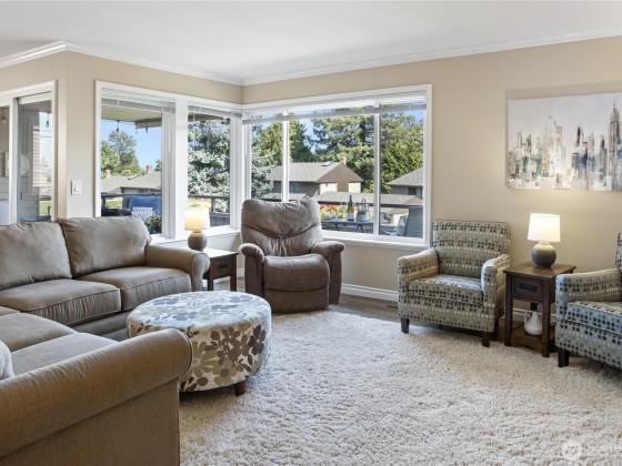 High quality, freshly renovated residence features new windows, HVAC w/ AC, electrical panel, car charging box, appliances & more! Spacious floorplan w/ expanded kitchen, 3 bedrooms upstairs & 4th room on lower level. Take in the extraordinary setting of impeccable grounds, vast open spaces, & expansive views from the large private deck. Turn the key to your next life chapter & begin enjoying the lifestyle & amenities within the exclusive Glen Acres gated community! HOAs include country club membership w/ full golf benefits. You'll love the convenient restaurant w/ lounge & resort-like activities at golf course, pool, pickleball courts & fitness center! Dues also incl. W/S/G & gas! Near Seattle & airport. 55+ Community w/ possible waiver.