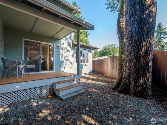 Charming end-unit single-family townhome with 1,148 sq. ft., 2 bedrooms, 2 full baths, and a powder bath. Freshly updated inside and out with new paint, appliances, and light fixtures—this home is spotless and move-in ready! The main level offers an inviting living room, bright kitchen, and convenient half bath; upstairs, both bedrooms enjoy private full baths. A single-car garage provides extra storage. Enjoy a cozy fenced yard with a deck—ideal for morning coffee or pets. Walk to downtown restaurants, with quick access to I-5. Comfort, convenience, and affordability—perfect as a starter home or investment! This property is not located within the 100-year flood plain.