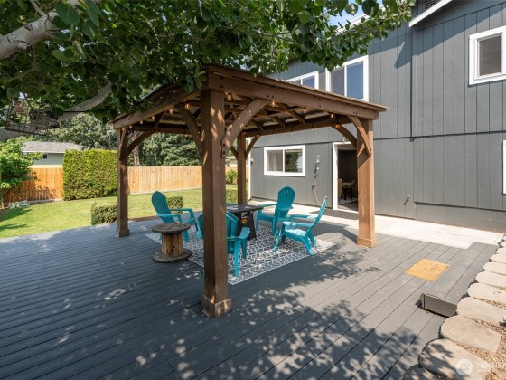 Luxuriously remodeled 5-bdrm home with main level living featuring a spacious updated kitchen with so much storage, expansive family room for hosting holidays with friends, pellet stove and exquisite custom pine ceilings and beams! Over 3500 square feet, this home has enough room for all; multi-generational living with kitchenette downstairs; option for home business or Airbnb! Home has custom tile and vinyl plank throughout along with carpet. Huge outdoor living space has Trex decks in front and back, outside storage, UGS system, irrigation, RV parking, 2 huge driveways, new paint throughout, all-new vinyl windows less than 10 years ago, and auto outdoor lighting! NEW ROOF! $5,000 toward closing costs and 1-Year Home Warranty!