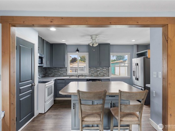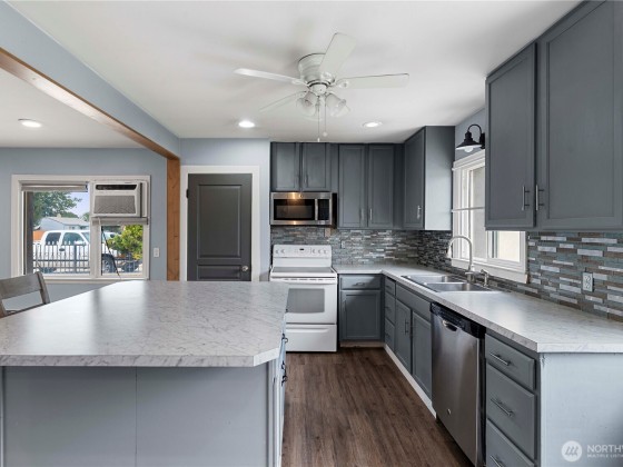 Remodeled Quincy, WA home perfect for multi-generational living or rental income. Central location near schools, shopping, and downtown Quincy. Main floor features an open-concept living space with updated kitchen, 3 bedrooms, and optional laundry. Separate entrance to the lower level includes a full kitchen, family room with fireplace, laundry, 2 baths, and primary suite—great for extended living or rental potential. Attached garage plus detached shop with alley access offers parking for 4+ vehicles. Fully fenced backyard with lawn. Rental history at $2,500/month.