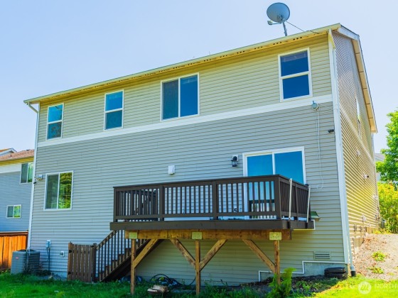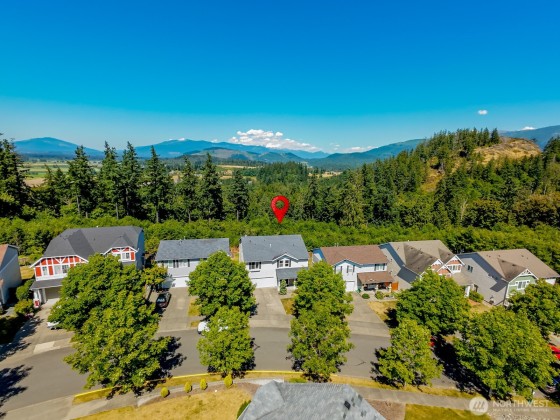Enjoy breathtaking Mount Baker views from this beautifully updated home! Featuring a brand-new deck, fresh interior paint, and a modernized kitchen, this 5-bedroom, 3.25-bath gem offers comfort, style, and space. Stay cool with central AC and breathe easy with a built-in HEPA air scrubber. The home also includes a built-in vacuum system for added convenience. Perfect for entertaining, you'll love the expansive great room, cozy living room, and a tranquil backyard that backs onto a lush greenbelt. The spacious primary suite includes dual closets and a luxurious bath with a jetted tub. A versatile loft area provides the ideal space for remote work, crafts, or studies. Two of the secondary bedrooms feature roomy walk-in closets.
