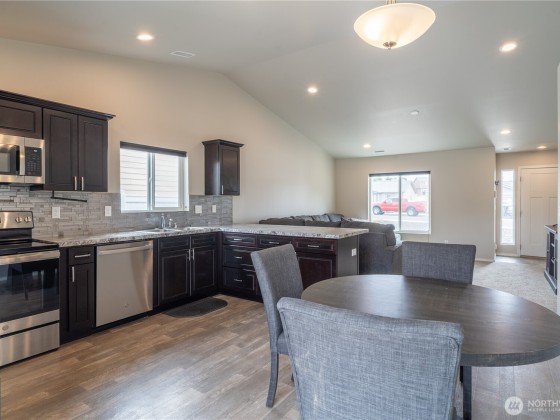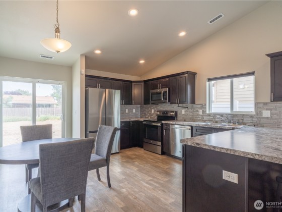 Like-new 3-bed, 2-bath home offers modern comfort and quality throughout. Enjoy an open floor plan with vaulted ceilings from dining to living area, plush carpet with 8 lb padding, solid wood cabinets, and durable laminate countertops. The primary suite includes an attached bath, and central heating/cooling provides year-round comfort. Outside, relax with a worry-free drought-resistant front yard and a partially fenced backyard with space to create your dream outdoor retreat. A two-car attached garage adds convenience. Located just 10 minutes from shopping in Othello and 20 minutes to Moses Lake—perfect for those who want space without losing connection. Come see all this home has to offer—you’ll feel right at home!