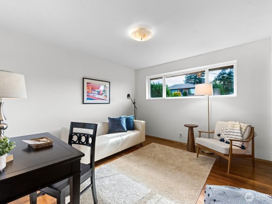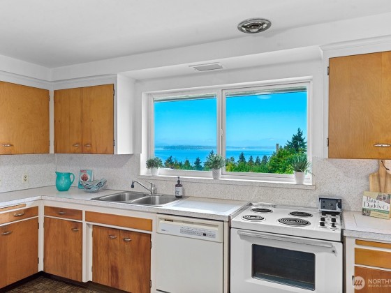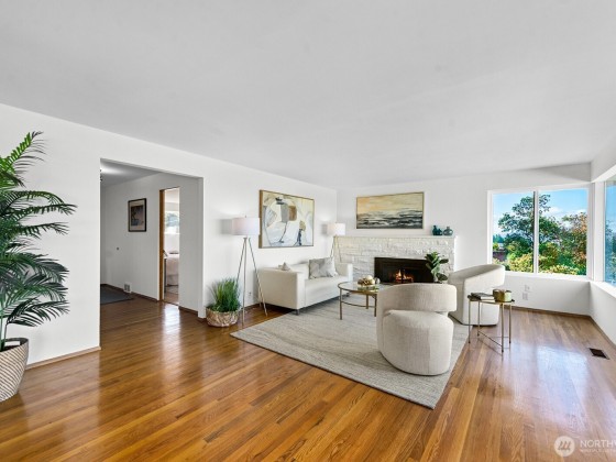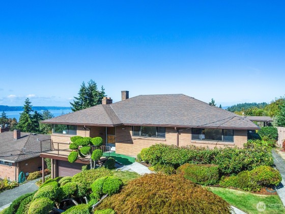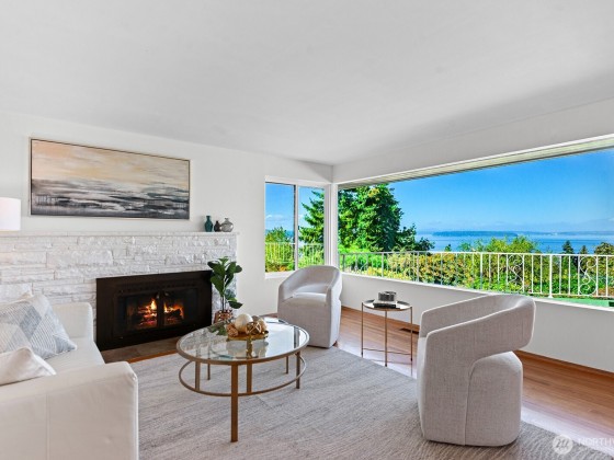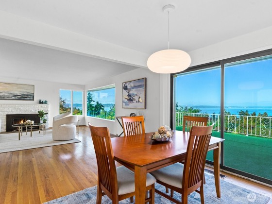 Breathtaking, wireless views of Puget Sound, Olympics, marine traffic, sunsets & islands from vintage mid-century home. On a large lot adjacent to greenbelt, this gem offers a rare degree of privacy, wonderful level, fenced yard with mature landscaping. Hardwood floors throughout the main, spacious, open living & dining rooms with wood-burning fireplace & sliders to big deck. Large functional kitchen has views & huge potential. 3 bedrooms on the main plus a full vintage tile bath. Daylight lower level with generous family/living area & fireplace opens to covered patio. Large 4th bedroom, 3/4 bath, laundry/kitchen & amazing storage. Fauntlee Hills neighborhood, close to Lincoln Park & ferries. Bring your design ideas & make it your own!