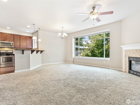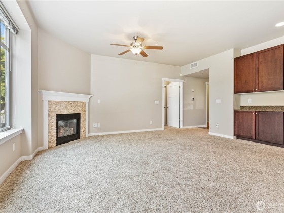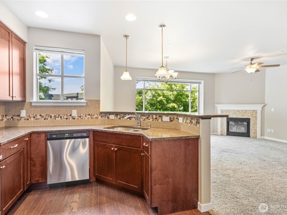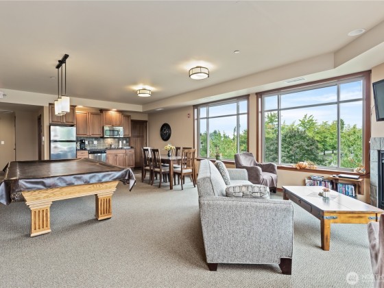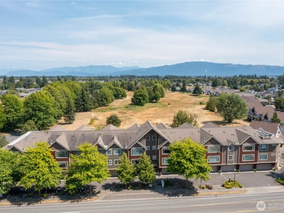 Enjoy secure, low-maintenance living in this sun-filled 2nd-floor unit in the desirable 55+ Chateaux at Garden Green. This 2-bed, 2-bath home features an open floor plan with cozy fireplace, granite countertops, SS appliances, hardwood floors, and bar seating. The spacious primary suite includes a large private bath; the 2nd bedroom offers great flex space. In-unit laundry and a private 1-car garage add convenience. The secure building includes a 2nd-floor lounge, 3rd-floor game room and patio. Walk to Homestead Golf, gym, dining, parks, and trails. On bus route, minutes to downtown Lynden. Note: Monthly Homestead dues apply in addition to Chateaux HOA fees.