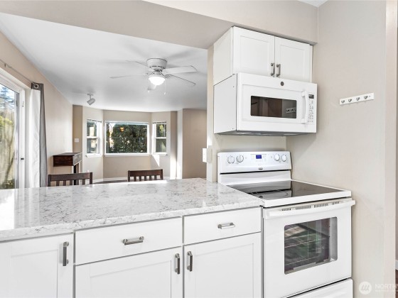 Totally updated ground floor unit in the heart of Birchwood! Spacious three bedroom unit offers generous sized bedrooms, a spacious full bathroom and half bath. Full sized laundry/utility room with side by side washer and dryer. Spacious living room features newer gas fireplace, bay windows and a private patio. Updates include new cabinets, countertops flooring throughout whole unit (including bathrooms), appliances, and more. Walkable to all of Birchwood's amenities, just steps away from Shuksan Middle School and minutes away from I-5.