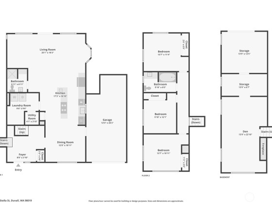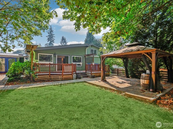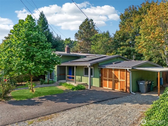 Amazing Investment Opportunity just a short walk to Historic Downtown Duvall and the local grade school, on a quiet, dead-end street at the top of the hill, next to the Lake Rasmussen Park. Private fenced backyard, garden space, large deck, gazebo, raised garden beds, lots of parking and storage. 2 bathrooms tastefully updated, with a gourmet kitchen and gas fireplace stove in the family room. Primary bedroom on the main with fireplace, opportunity to convert back storage into a primary bedroom spa/ bathrooms and add 196 sq ft! 3 bedrooms upstairs with 1 full bath. Newer metal roof, AC mini splits, furnace and 2022 $43k Solar Panel System! A perfect mix of classic charm and modern living in a highly sought-after location! Priced to sell!