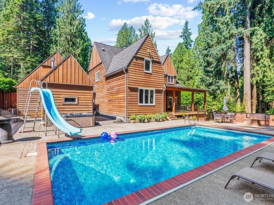 Welcome to a home designed for connection, comfort, and unforgettable moments. With four bedrooms—including a private basement suite—plus a nursery, den, and oversized parking for three vehicles, there’s room for everyone. The chef’s kitchen is perfect for preparing meals to share with friends, while timeless touches like clear redwood siding, handmade leaded glass windows, elegant archways, and hardwood floors add character and warmth. Entertain with ease on the expansive covered deck or enjoy summer days in the in-ground pool with a slide. Set on just under an acre near town, this home blends style, space, and everyday magic.