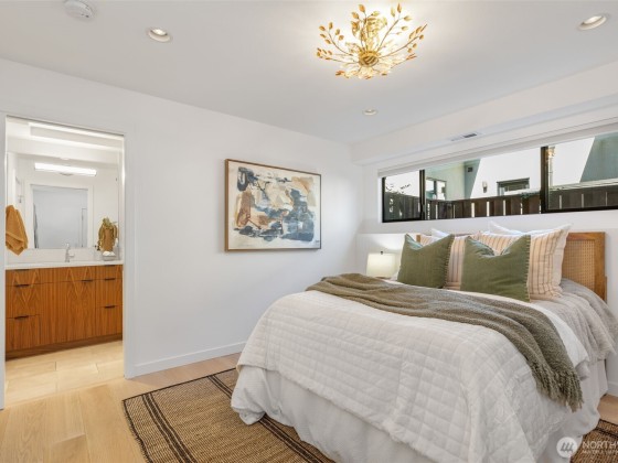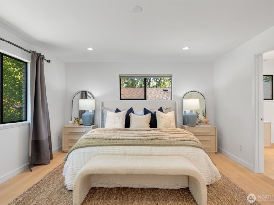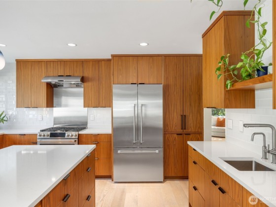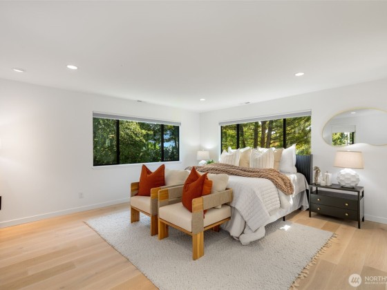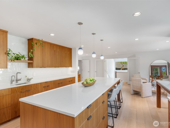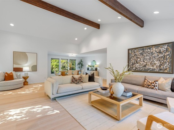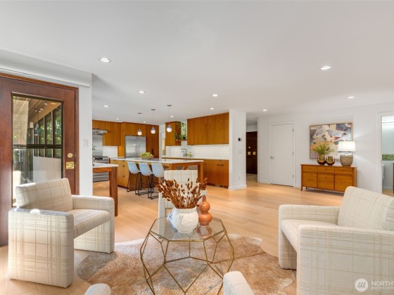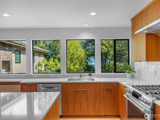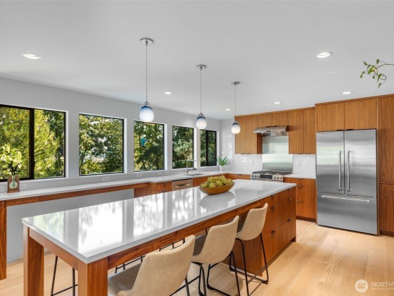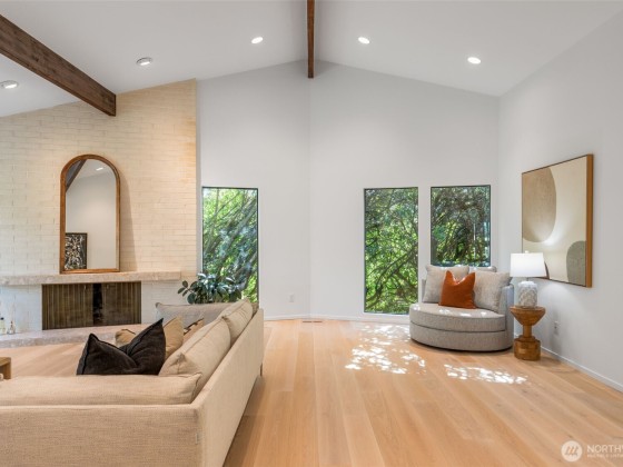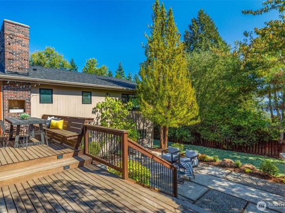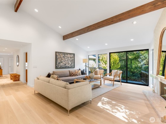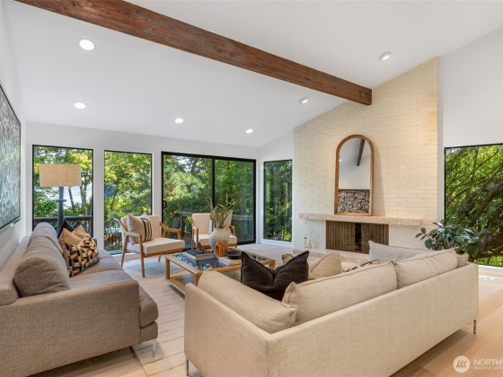 You can have it ALL in this carefully reconstructed Mid Century Marvel with PNW vibes. Its discreet exterior opens to reveal impressive vaulted ceilings, peaceful filtered lake views & all of today’s "wants" like open chef's kitchen, home gym, 2 car garage & AC. Totally overhauled from roof to sewer, from plumbing + electrical + HVAC systems to all interior surfaces, there’s nothing left for you to do! Existing rooms were reconfigured into 4 gracious ensuites w/large attached sitting rooms/offices, a very desirable main floor multi-generational living option. Relax in the private & versatile backyard w/built-in BBQ grill, upper deck, lower patio & level grassy area w/fruit trees + garden space. Eligible for Windermere Beach Club & Security.