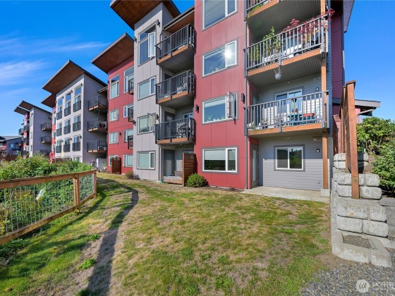 Welcome to Salmonberry Condos! This coveted 2-bedroom, 1-bath, 694 sq ft ground-floor corner end unit offers comfortable, modern living in a serene setting. Enjoy peaceful views over Fish trap Creek and surrounding trees, without sacrificing convenience. Built in 2020, the unit features high-end finishes—soft-close cabinetry, sleek stainless appliances, and thoughtful touches throughout. HOA dues cover water, sewer, garbage, snow removal, lawn care—making maintenance simple. Located steps from Lynden’s shops, restaurants, parks, medical offices & schools, this is the perfect blend of nature & downtown accessibility. Ideal for first-time buyers, downsizers, or anyone seeking low maintenance living with style.