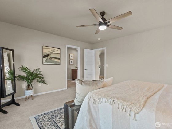 Welcome to Crossings at Sunrise! With stunning curb appeal of fresh landscaping, come in to find an open floor plan perfect for entertaining. At-home chefs will admire this kitchen featuring gas range, ample counter space, W/I pantry, and large island for extra seating. Expansive living room w/ cozy gas fireplace make for perfect gathering spaces, or step outside to your covered patio with new composite deck to enjoy meals al fresco. Den on main floor serves as an excellent work-from-home or hobby space. Upstairs, find bonus loft, great for media/game room/play area. Primary suite offers luxurious 5 piece en suite bath and W/I closet. This “smart home” it’s centrally wired for Ethernet and WiFi. Ring security system included. Welcome home!