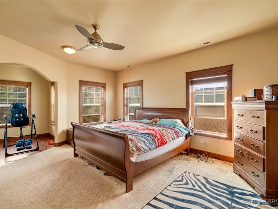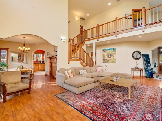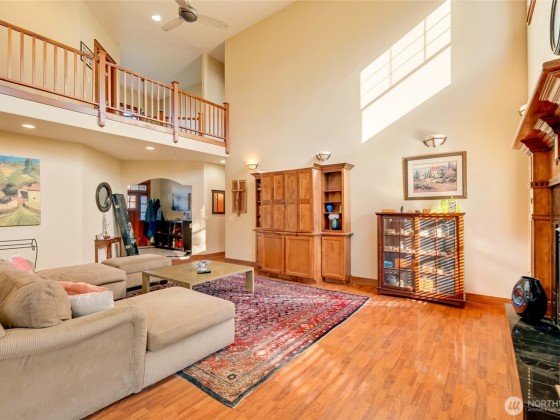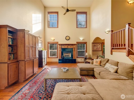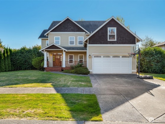 Stunning 4BD/3BA home in the gated Greens at Loomis Trail! This 3,300 sq ft home offers soaring ceilings, travertine & marble entry & a grand living room w/custom maple entertainment center, gas fireplace & abundant natural light. Elegant dining room w/maple built-ins opens to the patio & private backyard with no rear neighbors. The spacious kitchen features solid surface counters, stainless appliances, island, hardwood cabinets & built-in desk. Primary suite upstairs with sitting/exercise room, spa-like bath, & huge walk-in closet. One bed/bath downstairs; additional bedrooms & bathroom upstairs. Open upstairs hallway creates light-filled living throughout. New water heater, laundry room and 2-car garage complete this exceptional home.