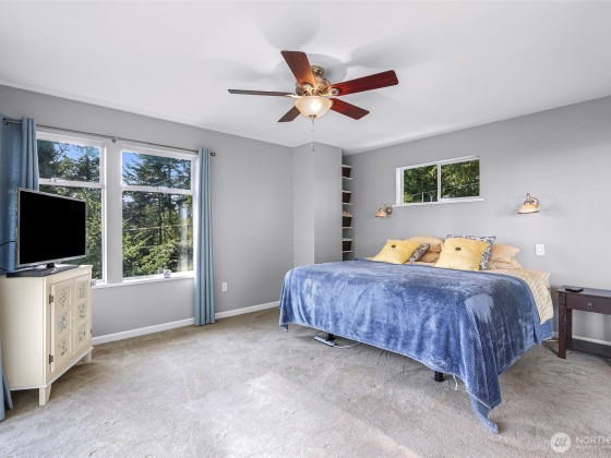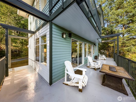 Nestled among the evergreens of Lummi Island Scenic Estates, this 2-story home with a finished walk-out basement captures sweeping east-facing views of Mt. Baker and Bellingham Bay. Light pours into the main floor with its inviting living room, kitchen, and half bath. Upstairs, two bedrooms include a spacious primary retreat with private view deck and a spa-inspired bath finished in travertine. The lower level features a theater room with slider access, pull-down projector screen, and ¾ bath. Ownership in Scenic Estates provides access to a private beach, boat launch, clubhouse, swimming pool, sports courts, and more—your island lifestyle awaits!