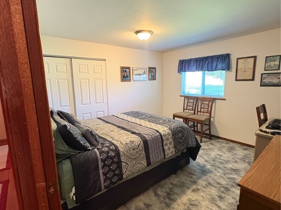 Discover this beautifully maintained home set on 4.91 acres of picturesque land. Plenty of room w/5 Bed/2 bath. Inside enjoy the bamboo flooring in the kitchen, appliance, recessed lighting, attractive cabinetry & breakfast area. Large dining area perfect for entertaining. Inviting living room is spacious & features fireplace & stunning views. Master bedroom, w/adjoining bathroom & private deck, as well as 2 more beds on the main floor. Remodeled basement adds versatile living space w/ full bath, bedroom, workshop & storage. The home boasts numerous enhancements, freshly painted exterior, and covered deck. Fenced, old barn, Quonset, & 400 amp service, yard w/shade & fruit trees. Ideal hobby farm.