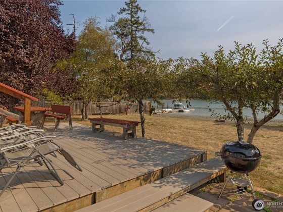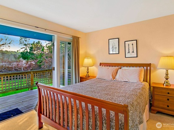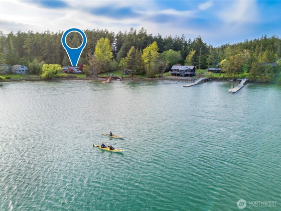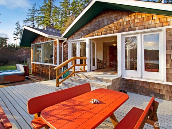 Peaceful waterfront retreat on Mitchell Bay with no-bank access for clamming, crabbing, or launching your kayak. Picture windows frame enchanting bay views, while a wood-burning stove adds cozy charm. The home offers both a living room and family room, plus a dining area with easy flow to the deck and patio. The primary suite features French doors opening to a private deck and an updated en-suite bath with oversized shower. Additional updates include new flooring and refreshed main bath. Relax in the new hot tub after a day of hiking, biking, or kayaking. Nestled in a quiet neighborhood, yet minutes to Roche Harbor Resort, marina, spa, Mount Young trails, and British camp National Park.