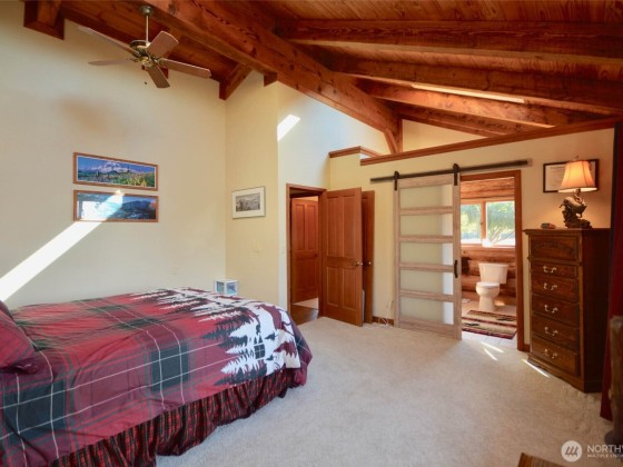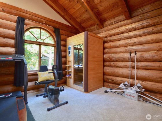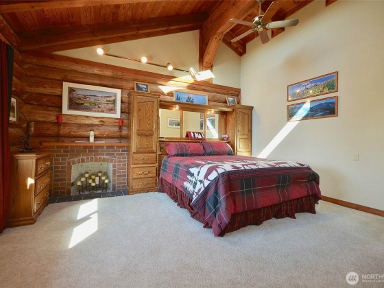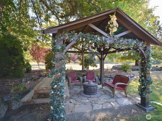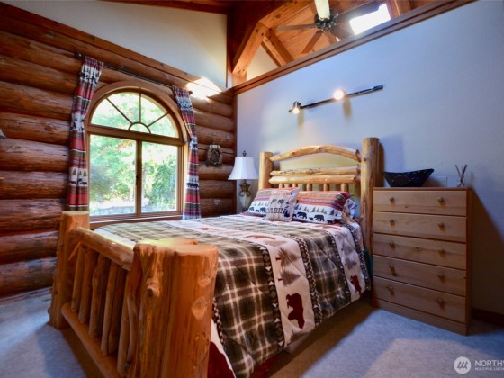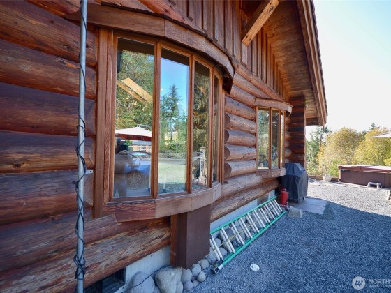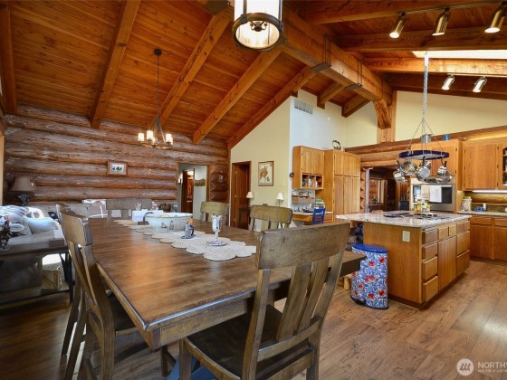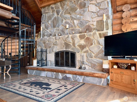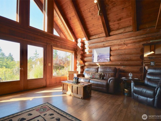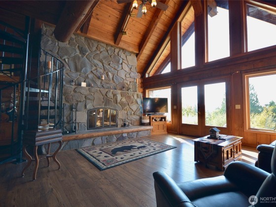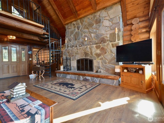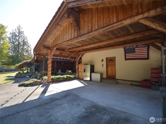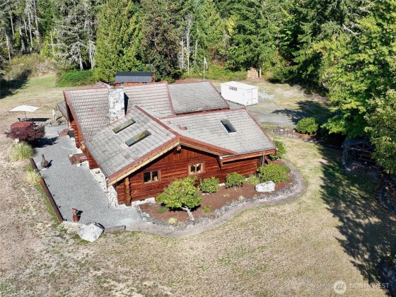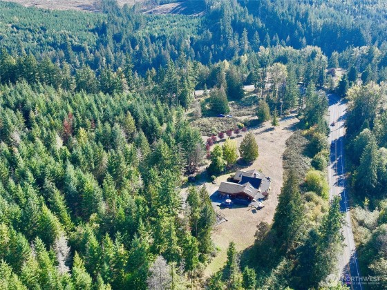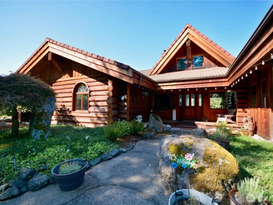 Life in your own lodge. Of matchless construction & appearance this stunning 2,498sf Swedish-cut log home sits on 4.6 private acres. Dramatic 17ft high shiplap ceilings, solid beams & fabulous stone fireplace. Beautiful chef's kitchen w/island & large dining area - perfect for entertaining. The beautiful main bedroom boasts a fireplace & ensuite bath - 2 other bedrooms share 2 additional bathrooms. So much more: concrete roof, suspended loft, walk in pantries, storage rms, new heat pump, new well pump, large outbuilding, huge carport, gazebo, gated entry. Back onto 4,300acres of Pack Forest w/trails & activities. Close to amenities & JBLM. Home Warranty for Buyer has been purchased! Call for Special Features list & be impressed!