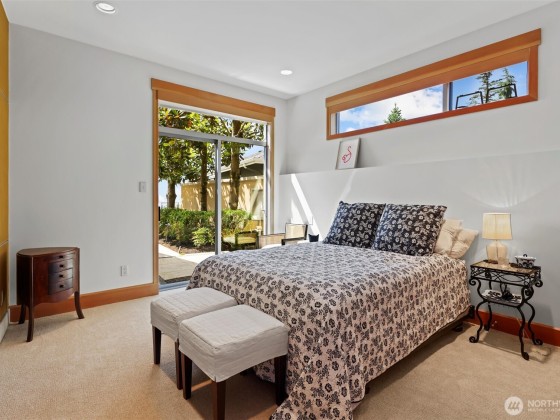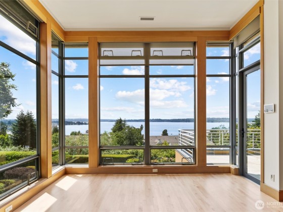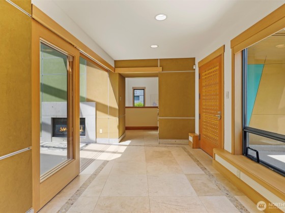 This luxury home boasts a rare bluff setting w/ one of Kirkland’s best views. Designed by Robert Reed, it blends modern PNW architecture w/ Mexican designs inspired by Luis Barragán & Ricardo Legorreta. Built by Bender Chaffey, it features 36” thick angled stucco/metal walls. The 6 BD, 5.5 BA, 5,500 SF home includes an entry w/ a fountain, indoor courtyard w/ fireplace, real stucco, natural stones, & doors like modern Mexican homes. It offers high ceilings, large windows, built-ins, multiple courtyards, a living room w/ fireplace, formal dining, nook, exquisite kitchen w/ views, deck, primary bedroom w/ spa-like bath, 2 offices, rec room w/ kitchenette opening to patio, study/library, craft room, beautiful gardens, & a 3-car garage.