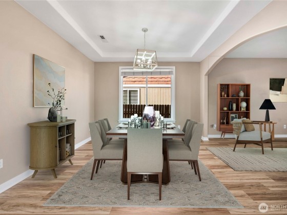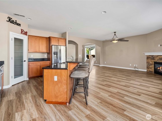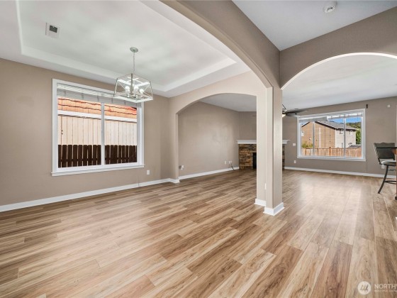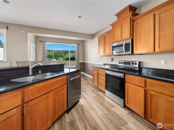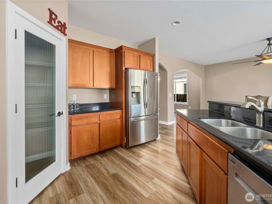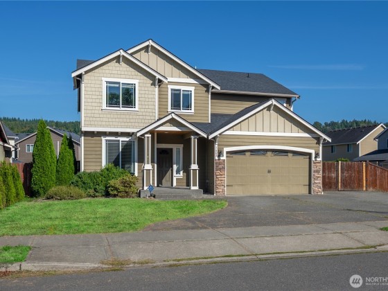 Custom home on a extra-large lot in a quiet Orting neighborhood! The open floor plan offers a hillside view kitchen with granite counters, custom cabinetry, stainless steel appliances and a breakfast nook. A formal dining room with a Casa Blanca chandelier, spacious office/den and wide staircase create a welcoming layout. The generous primary suite features a 5-piece bath an walk in closet while additional bedrooms are light filled and roomy. Upstairs, a large bonus roomy with closet easily functions as a 5th bedroom. Updates include new LVP flooring and carpet throughout. Enjoy extra storage in the garage, plus paved RV parking large enough for a motorhome and boat. With formal and casual spaces, thoughtful updates and plenty of room.