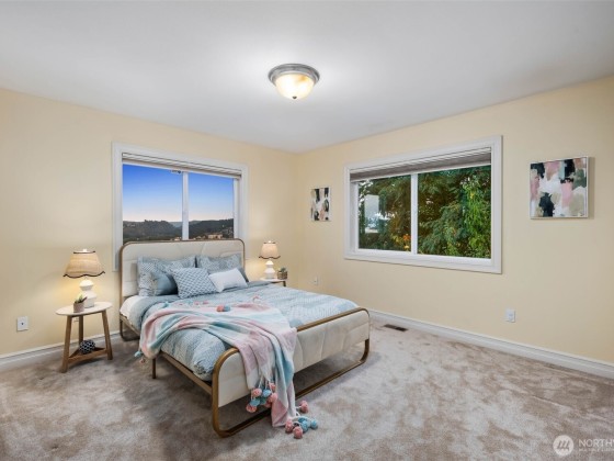 Experience breathtaking views of Lake Washington, Renton, Boeing, and the mountains from this immaculate 3-bedroom + den, 3.5-bath home. Thoughtfully designed for comfort and entertaining, it features a chef’s kitchen with slab granite counters, stainless appliances, and an open family room with nook. The primary suite offers a spa-like bath, sitting area, and private deck. Enjoy multiple view decks, a lower-level bonus room, den with Murphy bed/French doors, and elegant millwork. With A/C, a central vac system, and refined finishes, this home blends luxury and function. Conveniently near The Landing, shopping, dining, freeways, and just 20 mins to Downtown Seattle or Bellevue.