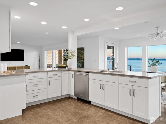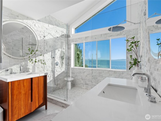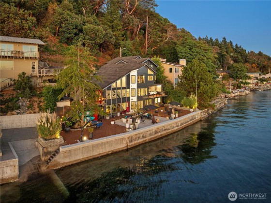 Discover a rare Seola Beach home with 110’ of low-bank Puget Sound waterfront. Designed for entertaining & luxury living, the outdoor kitchen boasts a wood-fired pizza oven, custom brasero grill, and expansive deck with sweeping views. Inside features 5 beds, 3.5 baths, & nearly $1M in updates that showcase Thassos marble, heated floors, smart appliances, & soaring ceilings w/ large windows. The light-filled primary suite offers a walk-in closet and spa-inspired bath with dual vanities and rain showers overlooking the water. Downstairs, a 2-bedroom MIL suite w/ kitchen provides flexibility for guests or everyday living space. Elevator access, a car-enthusiast's garage, wildlife watching, & thoughtful design complete this one-of-a-kind home!