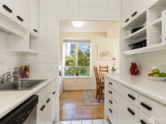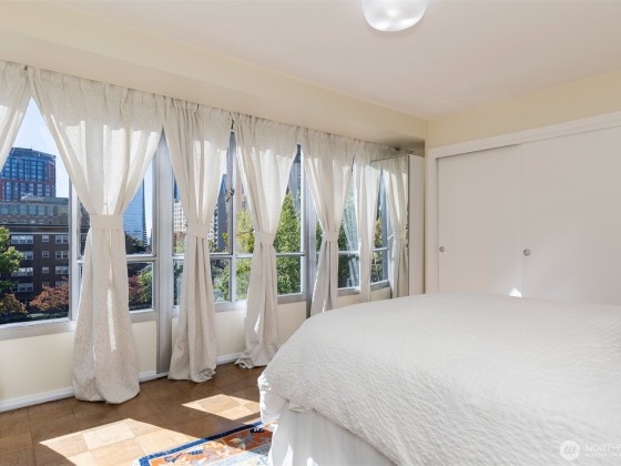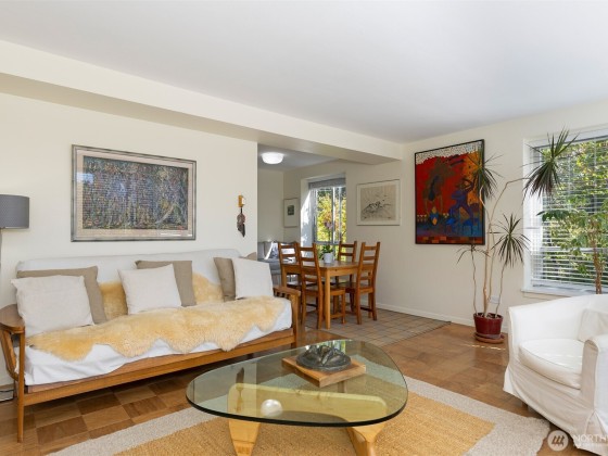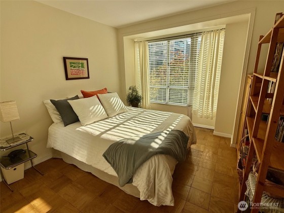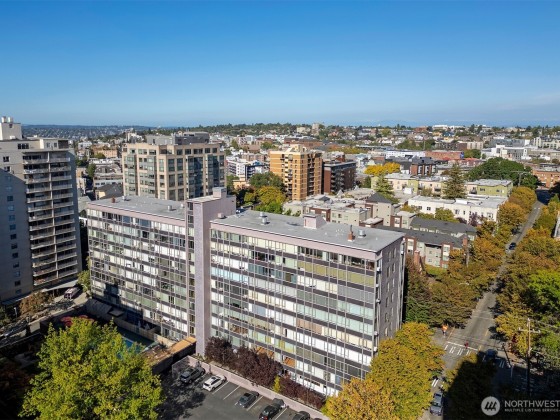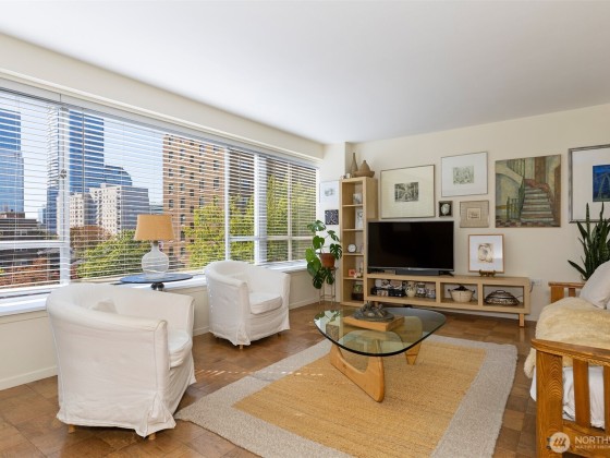 Discover the perfect balance of city living and neighborhood serenity at Sutton Place—a striking mid-century concrete and steel building nestled in one of Seattle’s rare residential zones on First Hill. Live privately amongst historic mansions and leafy parks while enjoying sweeping downtown Seattle views through expansive west-facing windows. A coveted SW end unit allows for golden natural light enhancing the airy, open layout. Enjoy a modern aesthetic throughout with classic parquet floors and a spacious living room perfect for entertaining or unwinding in style. Two spacious bedrooms, incl primary w/full bath, offer sublime elegance. Extra storage, deeded garage parking, EV charger, car wash station, heated outdoor pool, common laundry.