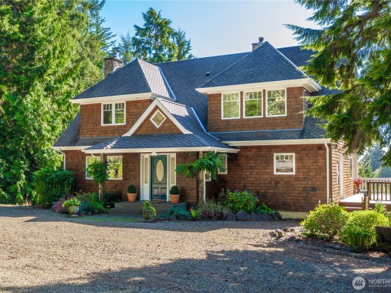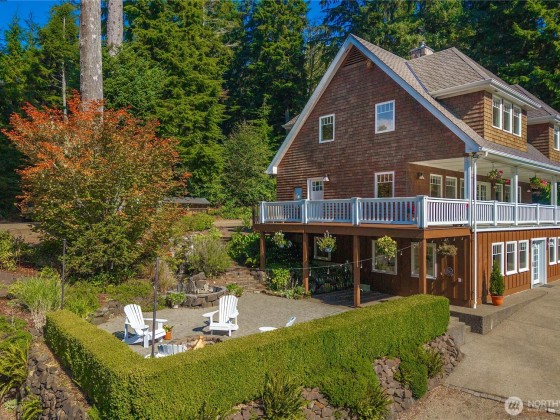 Just outside the fishing village of Hoquiam & across the bay from Ocean Shores, a private lane leads to "Love Story", a charming Shingle-style home steeped in the essence of Nantucket style. With privacy all around, glimpse of the bay and near the beach, this artistically handcrafted home could easily blend into Nantucket with its slopping roof & stone detailing. An Antique-like blue door opens to interiors that exude classic~coastal~chicness, showcasing 2 fireplaces, dark wood floors, custom cabinetry, plastered textured walls & ceiling, and heirloom touches throughout. In addition to the main house, a lower level guest quarters offers plenty of room and opportunity for guests, rental, work and play. Detached Garage/Shop. Truly charming!
