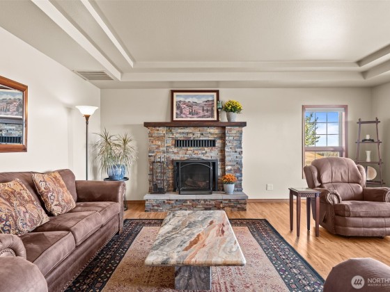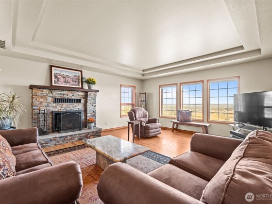 Nearly 20 acres of country living with sweeping views! This 4-bedroom home features open living & dining with a cozy wood-burning fireplace, vaulted sunroom with pellet stove, and daylight basement with 3 bedrooms. Outside, enjoy wide-open space with room for animals, a chicken coop, and a fire pit for evenings under the stars. A large shop offers 2 full bays, air compressor, and storage, plus a fully finished 2-bed/2-bath apartment with laundry—perfect for guests or rental income. All just 10 minutes to shopping, schools & conveniences!