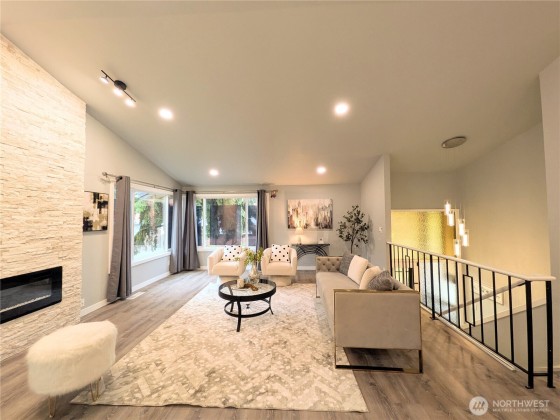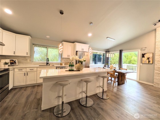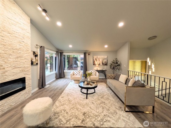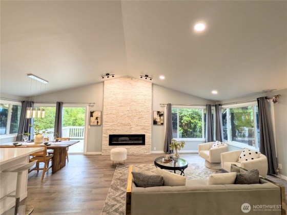 Stunningly Remodeled Home in Wedgwood! Fully reimagined split-level on an oversized corner lot in one of Northeast Seattle’s most desirable neighborhoods. Over $300,000 in renovations make this turnkey. The light-filled living room features vaulted ceilings, hardwoods, and a striking fireplace. The new chef’s kitchen offers custom cabinetry, quartz counters, and premium appliances, flowing into the dining area with slider to a deck—perfect for entertaining. Upstairs: three spacious bedrooms including a luxe primary suite with private bath and deck. Downstairs: large family room, one bedroom or office, updated bath, and redesigned laundry. Minutes to Matthews Beach, with top-rated schools and Hospital, live comfort and convenience