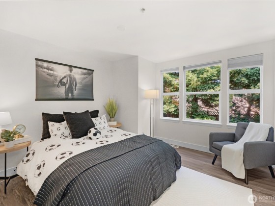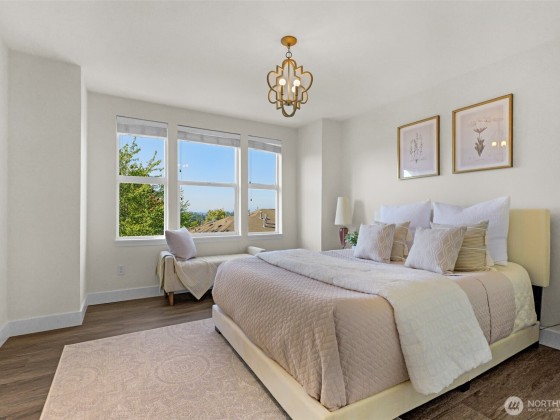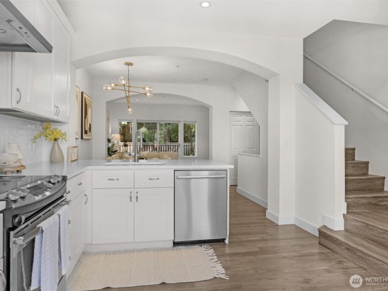 This beautifully remodeled townhouse is ideally located within walking distance to P&R,Bellevue University,and just minutes from downtown Bellevue and Seattle.Convenient access to Amazon and Microsoft shuttles.The bright, updated kitchen features quartz countertops, ss appliances, and durable LVP flooring.It opens seamlessly to the dining and living areas, along with a convenient powder room on the main level.Upstairs you'll find 2 spacious bedrooms and 2 updated bathrooms.Large windows provide abundant natural light and views of the city and lake. In-unit washer and dryer included. Enjoy a 2 car garage with generous storage space,and a private,fully fenced patio—perfect for relaxing or entertaining.No rental cap. Pet-friendly. A must-see!