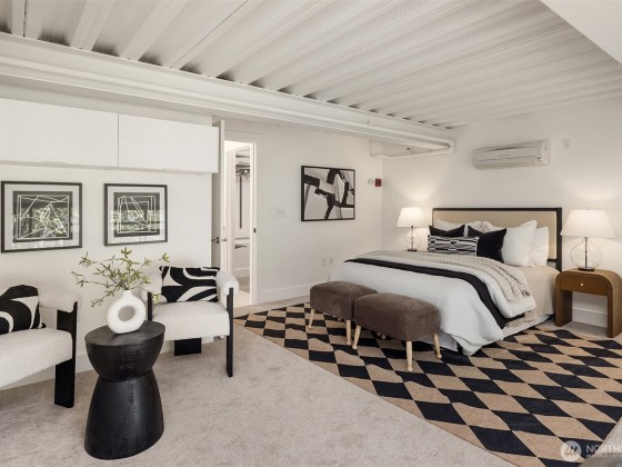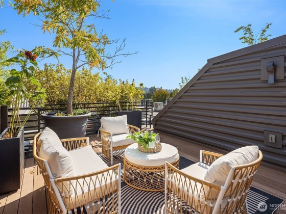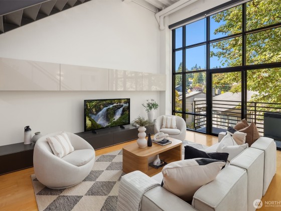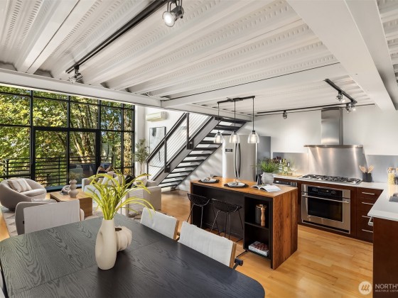 Dreaming of living steps from the Arboretum? This is a rarely available top-floor parkside floor plan in the highly coveted, Madison Lofts. Featuring Highest quality concrete and steel construction plus an unbeatable location in the heart of Madison Valley. This polished and spacious loft is full of upgrades: gleaming hardwoods, chef's kitchen with custom Honeybuilt Island, A/C, Poliform built-ins, motorized blackout shades and more. Soaring 17 foot ceilings with floor to ceiling windows invite in natural light. Magnificent private rooftop deck extends your living space and surrounds you with lush landscaping. A perfect place to unwind. Welcome home!
