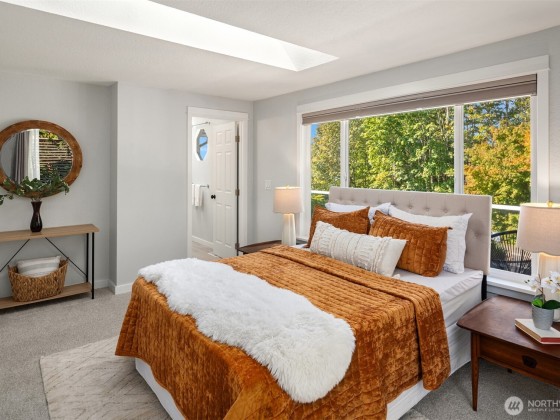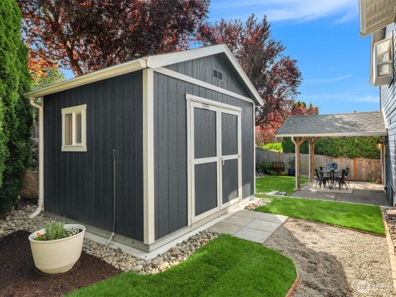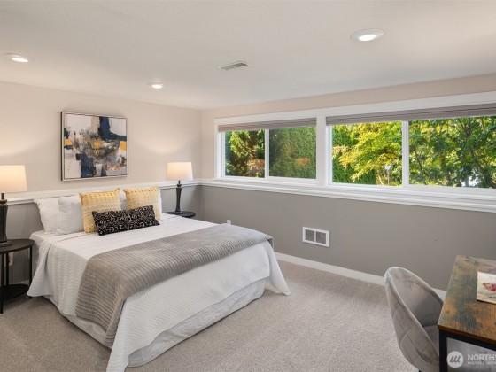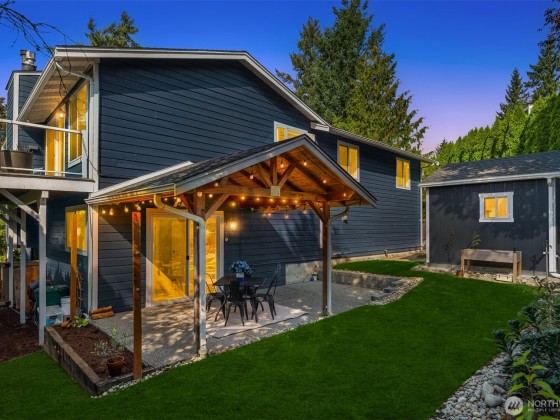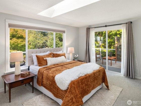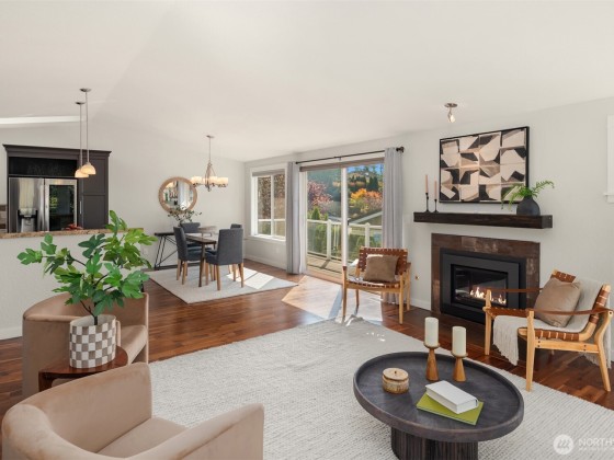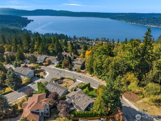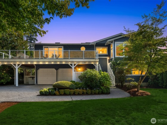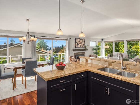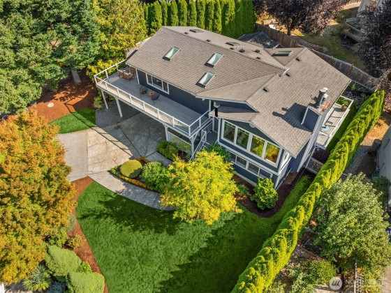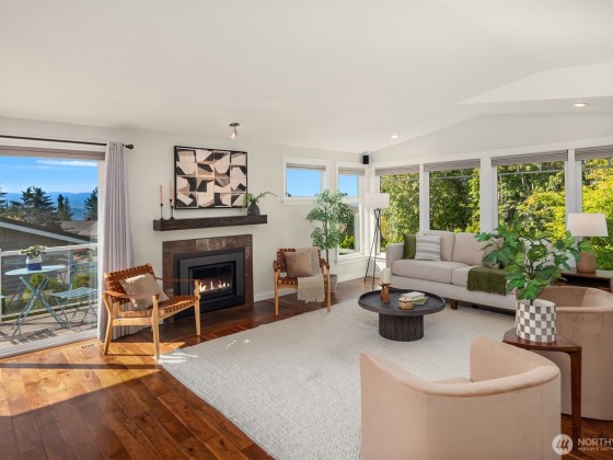 Bathed in natural light with peekaboo views of the lake, you feel right at home when you walk into this exceptional PNW home surrounded by tall evergreens and mature landscaping. Flip the switch on a rainy afternoon for fireplace warmth and ambiance or open all the doors and windows to let the sunshine in and enjoy the quiet of plateau living. A well appointed kitchen + dining area creates the perfect gathering space with unforgettable sunset views, and a serene primary bedroom down the hall offers a large private deck. Downstairs another bedroom + bonus room leading out to the patio and insulated shed *w/ electricity & water* for anything you dream up. Fenced and ready for furry friends, BBQ’s, all within steps from top schools and parks.