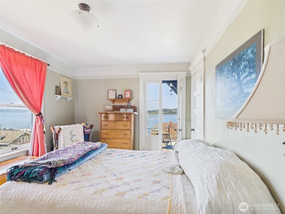 Located in Tacoma’s vibrant Stadium District, this historic 1905 residence exudes timeless elegance. Thoughtfully converted into stylish condo homes while preserving its original charm and character, this light-filled second-floor unit offers unobstructed views of Commencement Bay from nearly every window. Beautiful hardwood flooring flows throughout, complemented by graceful curved entryways, large moldings, and original fixtures that reflect the home’s rich history. The bedroom features French doors opening to a quaint sitting area, perfect for morning coffee or evening relaxation. With its seamless blend of historic details and modern convenience, this condo provides a truly unique and inviting living experience.