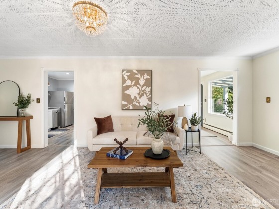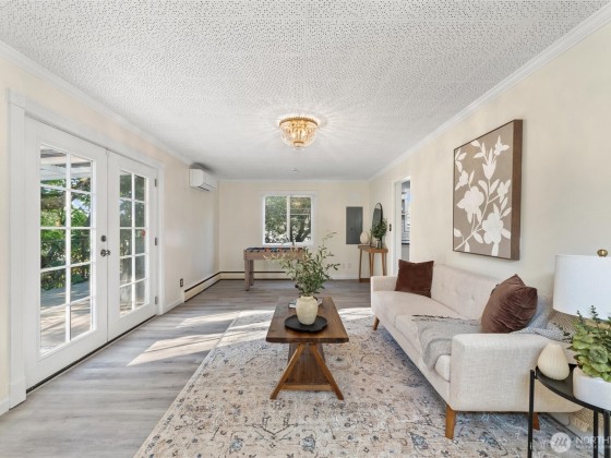 Thoughtfully updated 2 bed/1 bath home on a spacious corner lot. This home lives larger than expected. Flexible floor plan includes an extra living room that could be reimagined as a primary suite with an additional bed/bath. Freshly updated kitchen and interiors flow to a new expansive deck, perfect for outdoor dining, lounging, and entertaining. Large 9,187 sq ft lot with native landscaping provides privacy, low maintenance, and a serene retreat with no neighbors on three sides. Detached garage with pricate alley access offers storage, parking, or ADU potential. Recent updates include new roof, exterior and interior paint, mini split, electrical panel, lighting, and landscaping. 15 minutes from downtown Seattle and close to the airport.