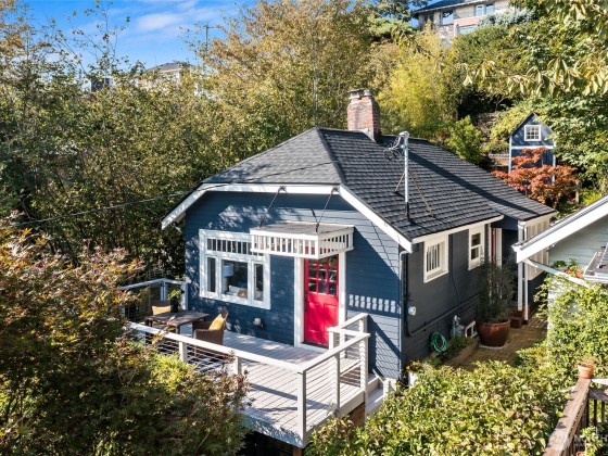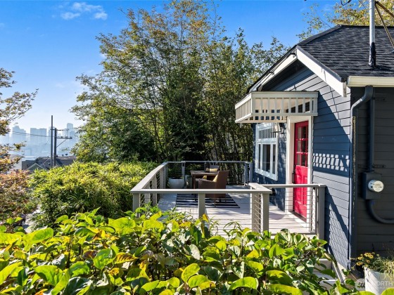 Discover a private sanctuary in Queen Anne. Charming 1923 1BR/1BA offers privacy, terraced grounds for gardening, and no HOA fees. Enjoy sweeping lake, mountain, and city views from two decks. The upper deck is perfect for sunsets and coffee, has power and water; the lower deck frames sparkling lights and easy living. Inside: Bertazzoni range, tankless water heater, and preserved original details. Stroll to South Lake Union, Trader Joe’s, tech hubs, and nearby parks. Ideal as a condo alternative—no shared walls, character, and a private city retreat. Affordable Queen Anne living with gardens, views, and great walkability. Welcome home! New Roof.