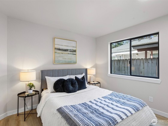 Superbly maintained 2 story modernized home in prime Haller Lake location. This bright & tasteful spacious 3 bed 2 full baths exudes modern living in the heart of North Seattle. Large living area with vaulted ceilings, cozy gas fireplace & freshly painted front deck. Stylish kitchen with refinished cabinets, new quartz countertops & backsplash, SS appliances, pantry & eating nook. Fully fenced low care yard & newly painted large deck, perfect for entertaining. New interior paint, baseboards & stunning LVP flooring throughout. Energy efficient gas tankless water heater in tandem garage with tons of storage space. Close to 145th light rail station, Greenlake, I5, dining, shopping & more!