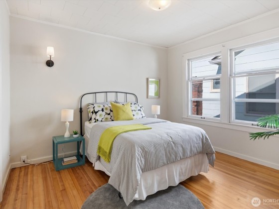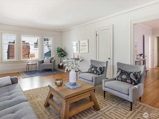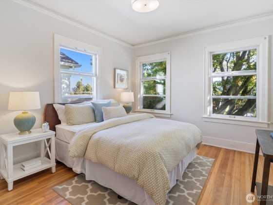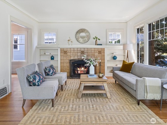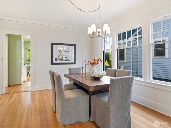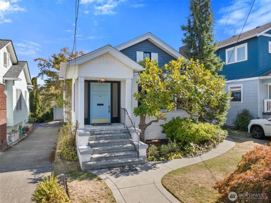 Wonderful move in ready 1920's charmer in the heart of much sought after Queen Anne neighborhood. Tons of vintage charm including newly finished hardwood floors, elegant millwork, coved ceilings, picture railings & beautiful wood mantled fireplace. Large formal living & dining rooms w/big picture windows providing lots of natural light. Spacious kitchen offers eating space & access to back deck & patio area. Two bedrooms & charming period full bath round out the main level. Finished lower level include additional bedroom, second bathroom, office area, extra finished room, laundry room & tons of built in storage. Potential for MIL/ADU unit w/separate entry. One car detached garage w/storage room. Updated plumbing/electrical.