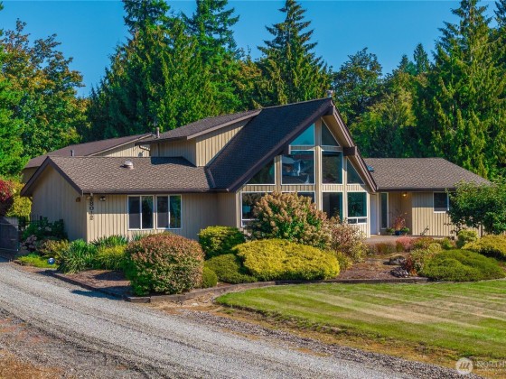 Immaculately maintained, solid, quality built Cedar Home on over 2.38 acres. Surrounded by mature landscaping, beautiful gardens, fruit trees, grapevines & complete privacy. A car enthusiast dream! 10+ car shop offers plenty of room for the collector, mechanic, hobbyist or small business w/ office space & income opportunity. Lovely light, bright, spacious home w/ vaulted ceilings, cedar beams, abundant windows, generous updated kitchen w/ quality appliances & new fridge. Solid hardwoods, updated cabinets & countertops. Large open Living room w/ wood burning stove. Spacious primary w/ 5 pc bath & walk in. Loft opens to below & offers full bath. Brand new trane heat pump & Lifetime CertainTeed TL composite roof. MIL opportunity Zoned SR4.5
