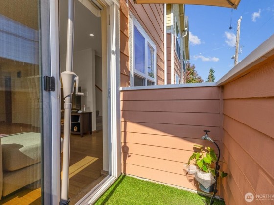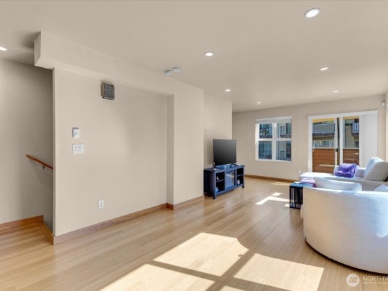 Welcome to this Sheik townhome mere blocks from Westwood Village with NO HOA DUES & a newly refurbished yard perfect for your furry friends. Enter through a spacious foyer, leading to an enclosed yard and patio, plus a one-car garage. Stylish bamboo flooring adorns the sunlit main living area with newly installed wooden-blinds for shade. The open kitchen boasts premium stainless steel appliances and an oversized pantry for all your culinary needs. Entertain in the living room with a charming balcony, complemented by a convenient half bath for guests. Upstairs, two bedrooms w/ vaulted ceilings share a modern bathroom, w/ laundry facilities conveniently located on the same level. Easy commute to whatever Seattle has to offer!