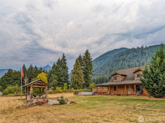 Stunning cedar home on 2+ acres near Mount Rainier National Park and White Pass Ski Area, ideal for outdoor enthusiasts! Boasting over 2,500 sq. ft. of wraparound covered porch, it’s perfect for relaxation and gatherings. Enjoy year-round comfort with a commercial propane on-demand hot water system. The inviting stone fireplace and well appointed kitchen add charm and convenience. Most furnishings included. An exceptional 30x48 two-story shop complements the home, offering customization and ADU possibilities. With a covered outdoor entertaining area, above-ground pool, and proximity to hunting, fishing, rivers, lakes, trails, and all the best of Northwest recreation, this property is perfect for leisure and short-term rental opportunities.