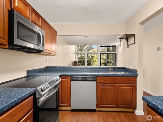 Discover resort-style living in the desirable Sixty-01 community, perfectly situated between Bellevue and Kirkland in the heart of Redmond. This spacious loft sits directly on the water, offering tranquil views and a new water feature just outside your door. The community provides 4 pools, a fitness center, clubhouse lounge, on-site bar, walking trails, and beautifully maintained grounds, all designed for relaxation and convenience. Just seconds from the Bellevue Golf Course and with quick freeway access, the location is unbeatable—close to shopping, dining, parks, and entertainment. Strong HOA reserves and a well-managed association add peace of mind, making this home the perfect blend of comfort, lifestyle, and Eastside convenience.