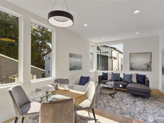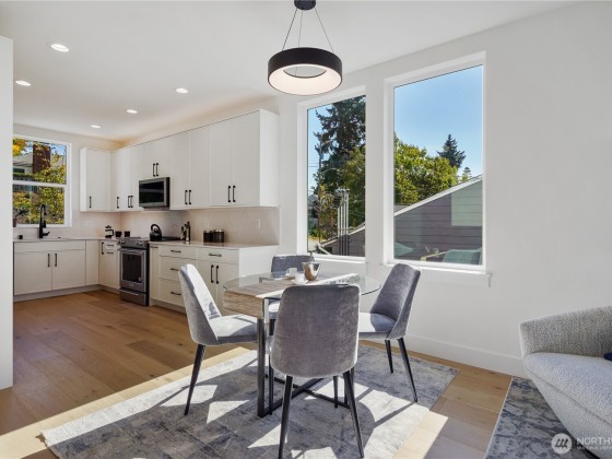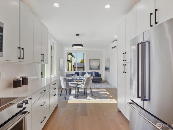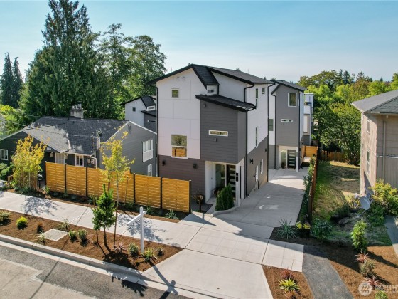 Exquisite living in Highland Park, West Seattle! Stunning 2025-built 3bd, 2.5ba home, one of four unique units, radiates luxury. Chef’s kitchen dazzles w/ custom cabs, quartz counters & pantry. Light-filled open-concept main flr boasts vaulted ceilings, eng. hardwood & custom lighting. Primary suite stuns w/ private deck & 5-pc spa bath w/ heated flrs, soaker tub, dual rain shower, designer tile, dbl vanity & custom closet. Two bdrms, full ba & family rm down; utility rm & pwdr add ease. Ductless mini-splits in every rm ensure comfort. Exterior w/ lush landscaping, fencing & cozy side patio deck. EV-ready parking, no HOA. Walkable Highland Park offers vibrant cafes, parks & rapid transit for effortless city access.